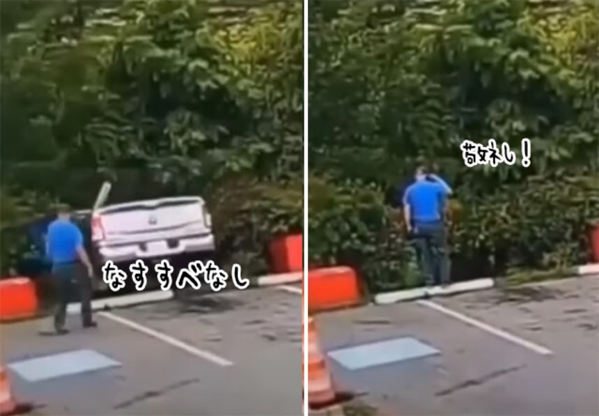 続きを読む人生最悪の日がいつ訪れるかわからない、どうあがいても飼えることのない現実は受け止めなくてはならない。駐車場でサイドブレーキを引き忘れた男性の車が林の中に転落。男性は無駄な抵抗を止め敬礼で見送ったのだ