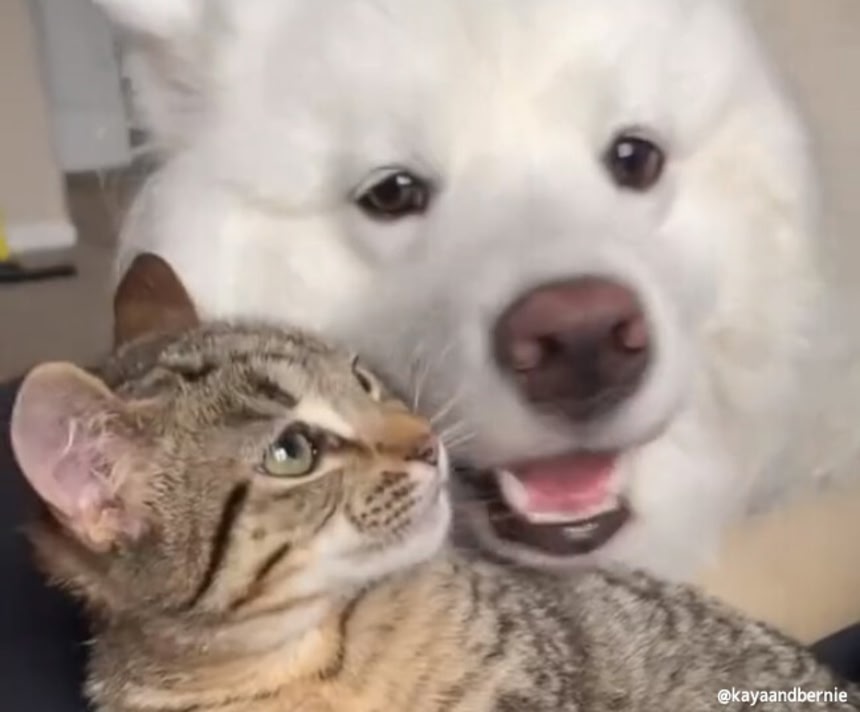 こんなに仲良しになったよ。サモエド犬と子猫の友情が育まれるまでの記録