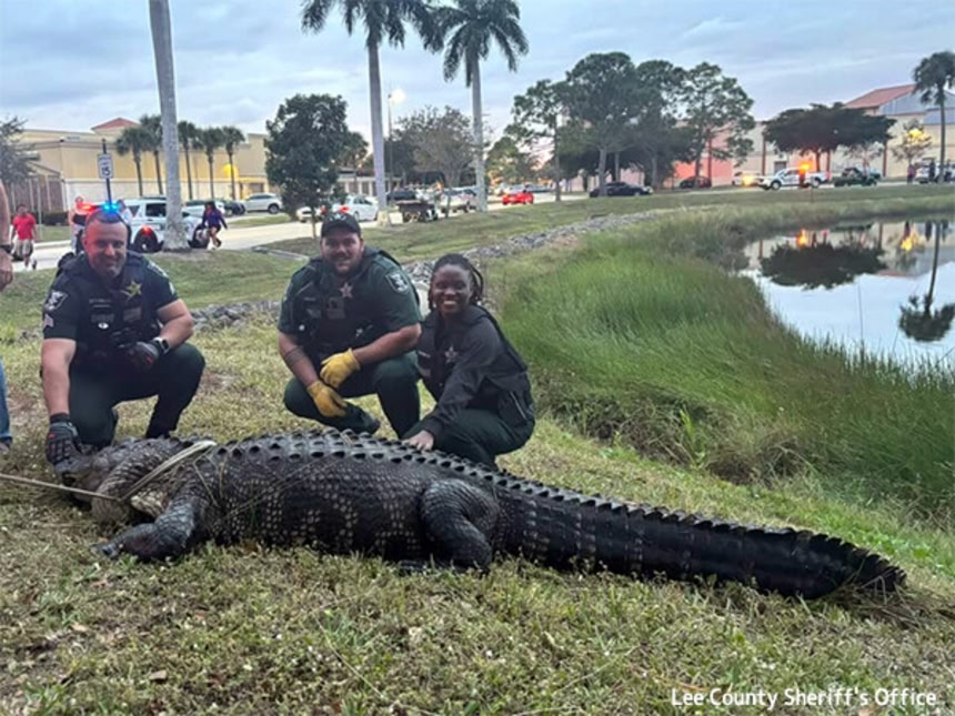 フロリダではよくあること。投げ縄と抑え込みでワニを捕獲する保安官