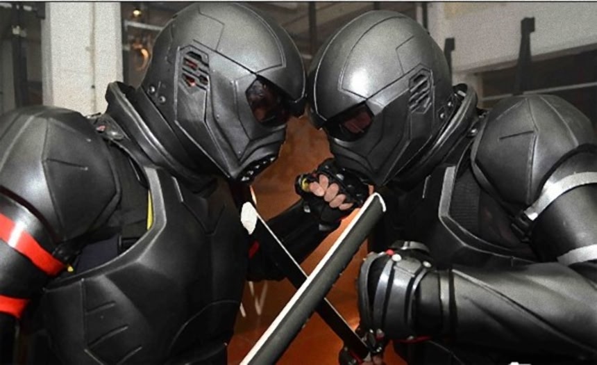 続きを読む中世の兵士さながらの鎖帷子(くさりかたびら)と鉄の鎧を身に着けた2人の選手がリングに上がり…