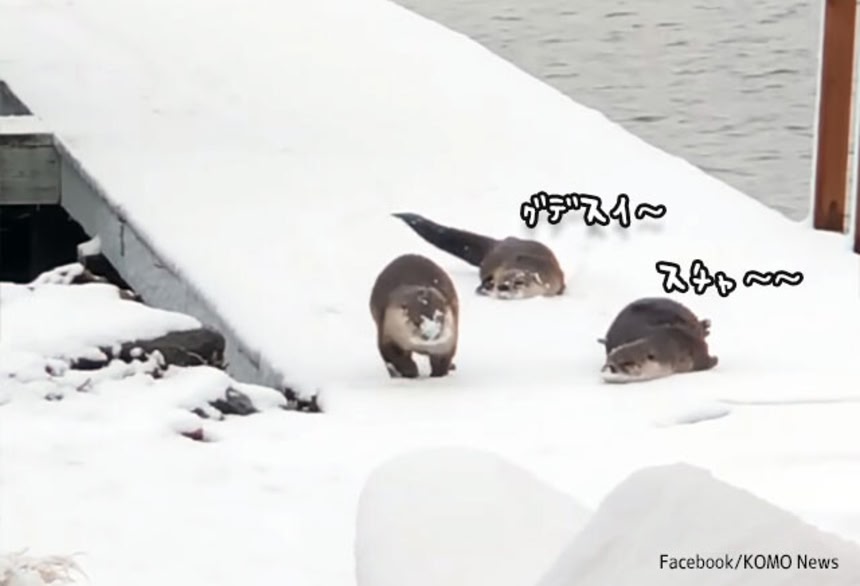 続きを読む雪の上で遊んでいるカワウソたちの姿がとらえられた。彼らは降り積もった雪の上をお腹で滑ってソリ遊びを楽しんでいる…