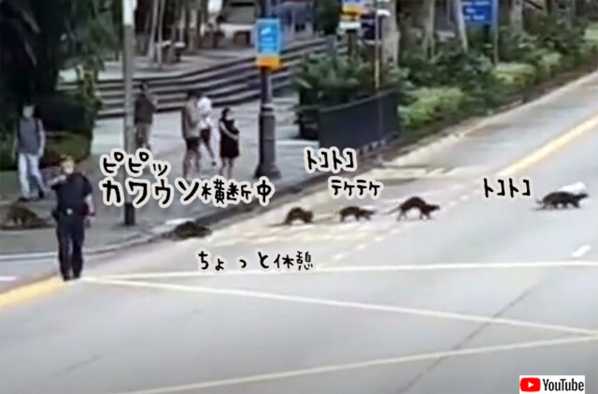 続きを読むシンガポールの大統領官邸前でカワウソの大家族が道路を横断。警備していた警察官は通行止めにしてカワウソたちをエスコートした。マイペースなカワウソの道路横断の風景は人々をほっこりさせたようだ