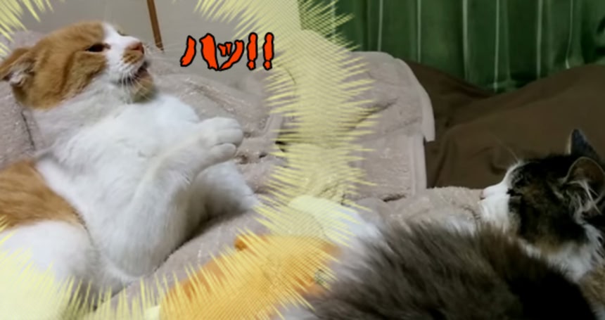 続きを読む近づいてきた猫(灰)に対して、「来んなにゃぁ!」とばかりに攻撃を仕掛けた猫(茶)であったが…