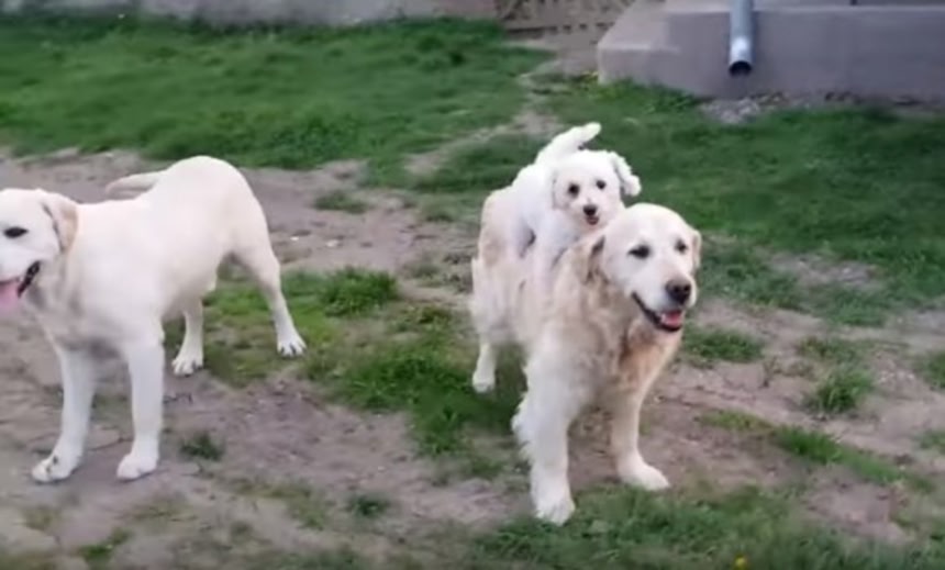続きを読む親子なのかどうかはわからないが、小さい犬が、ゴールデン・レトリバーの背中にパフっと飛び乗りそのまま無賃乗車…