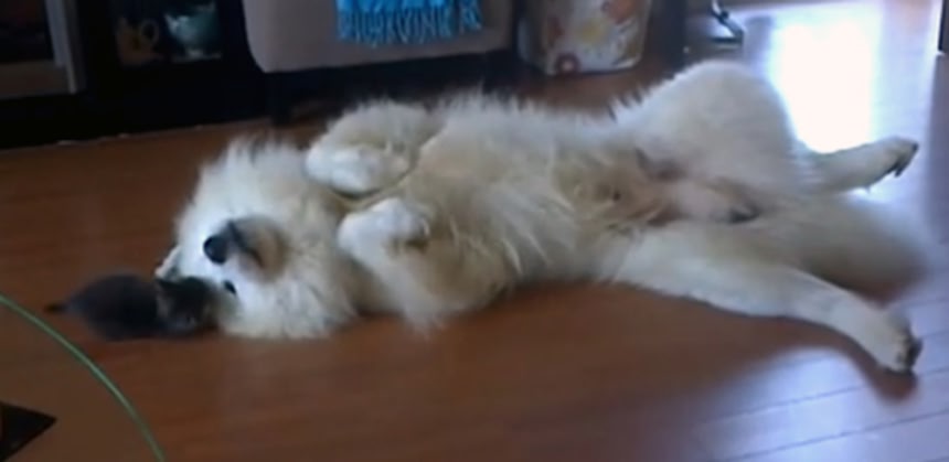 続きを読む大きな大きなサモエド犬のヴィダーさん。小さな子猫が大好きなのだそうで…