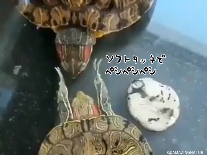 亀が亀に高速ビンタ、ソフトタッチでペシペシペシ